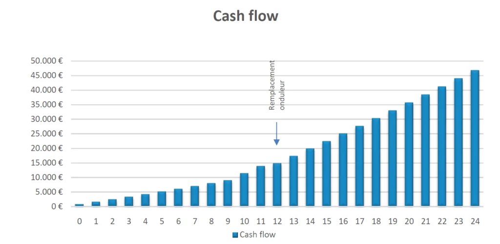 Dans ce cas, l’installation produit pour 2195 € d’électricité et la redevance est de 1400 €. Donc dès le départ, l’installation rapporte de l’argent. Si le tarif prosumer arrive un jour, la formule sera revue.